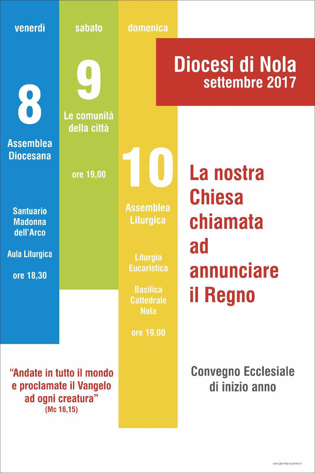 Si svolgerà l’8-9-10 settembre il convegno ecclesiale della diocesi di Nola. Il vescovo convoca la nostra Chiesa per tre giorni di preghiera, ascolto e condivisione. Riprenderemo tra le mani l’Evangelii gaudium e il nostro Sinodo diocesano per tracciare insieme la strada da seguire.