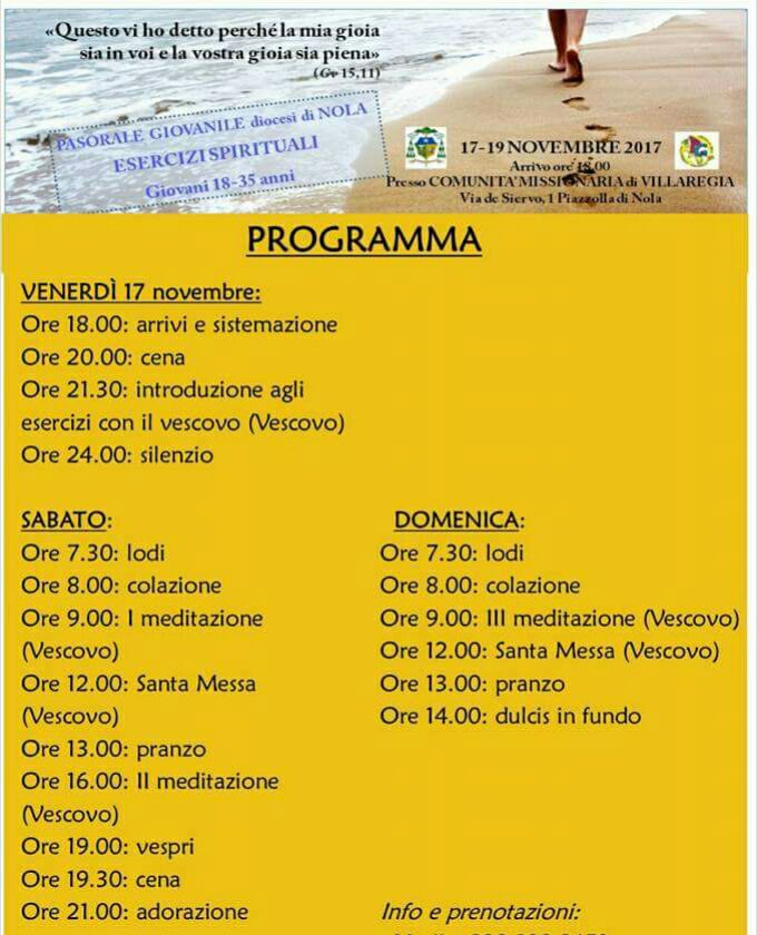 Informazioni di massima sul programma: arrivi dalle 18 del venerdì; conclusioni alle 14 di domenica; le ore saranno scandite dalla preghiera, dalla celebrazione eucaristica e dall’adorazione eucaristica, dalle meditazioni del vescovo e dai momenti di deserto