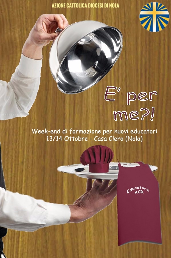 Mentre ci prepariamo a dare inizio al nuovo anno associativo, ricordiamoci di segnare in rosso sul calendario delle nostre programmazioni le date 13-14 Ottobre quando a Casa clero a Nola si incontreranno i nuovi educatori Acr per un week end alla scoperta della bellezza del “servizio ai piccoli”. È l’occasione per darsi tempo e provare a capire l’importanza della scelta educativa dell’Ac. Spesso l’esperienza di servizio comincia senza conoscere “gli ingredienti” che permettano di realizzare un piatto gustoso e appetibile! Non ci sono ricette per “fare l’educatore” ma sicuramente occorre saper dosare bene tutti gli ingredienti che, mescolati con l’esperienza, aiutano ad assumere uno stile: essere educatore!
