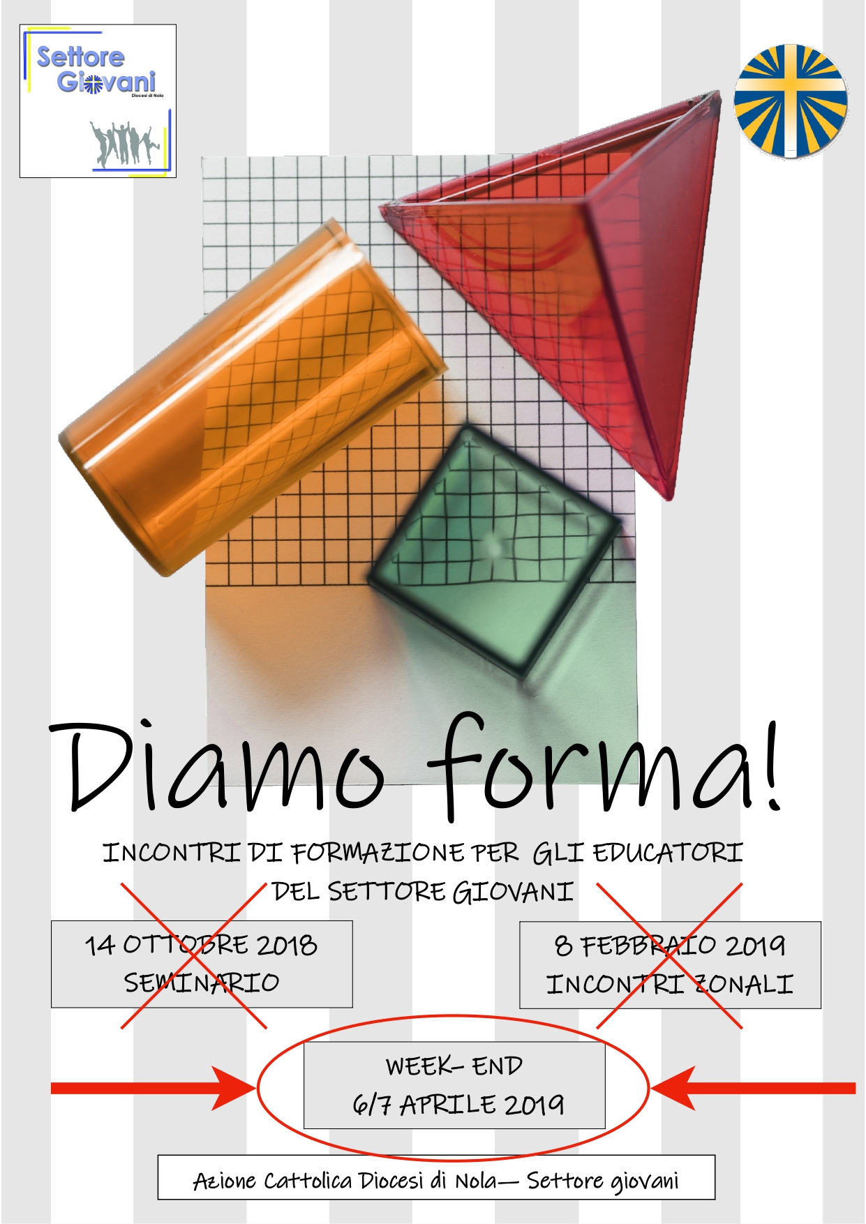 Svolgere il proprio servizio educativo spesso non è cosa semplice, molte le difficoltà che si possono trovare lungo il percorso; quindi non possiamo definirci “infallibili” o “i salvatori”, invece è fondamentale che gli educatori/animatori si scoprano missionari che hanno risposto ad una chiamata. Persone in grado di ritrovare in Dio e in se stessi energie, speranza, capacità di ricominciare ogni giorno come testimoni gioiosi di vita, anche nei contesti più problematici. Proprio su questo vogliamo sviluppare il week-end di formazione ,ultima tappa del percorso di formazione “Diamo forma!”, che ci appresteremo a vivere il prossimo 6/7 aprile a Visciano-Oasi di Maria. Due giorni insieme a tutti gli educatori e responsabili del settore giovani diocesano dove vivremo sia dei momenti di spiritualità che di ascolto/confronto; avremo ben 2 ospiti (Sara Falco e Francesco Del Pizzo) che ci accompagneranno in questo percorso alla scoperta delle bellezze che il servizio che viviamo in AC ci ha donato.